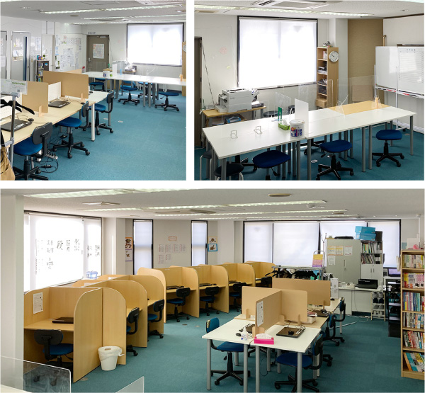 セミナーやグループワークの共有スペースとは別に、パソコンスキルや資格取得に集中できる、個別学習ブースをご用意。